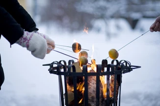 I vår stora paviljong går det att duka långbord för större sällskap. Vårt växthus ger skydd från väder och vind och har en fantastisk utsikt över vattnet.